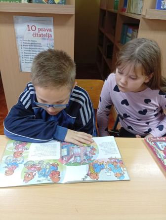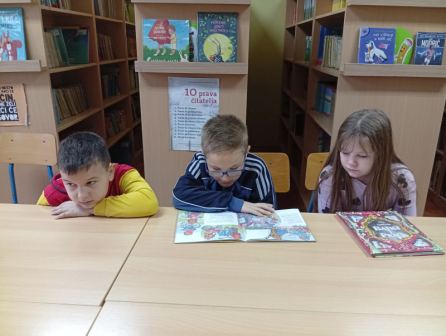 Svakog dana tijekom njihovog boravka u knjižnici odvojimo 15 minuta da bismo čitali priče. Osim što im čita knjižničarka i oni sami često čitaju jedni drugima. Na taj način kroz zajedničko čitanje potičemo maštu i razvijamo čitateljske navike. Nakon pročitane priče razgovaramo o likovima, njihovim postupcima i situacijama koje su se dogodile te slijedi neka aktivnost vezana uz priču.