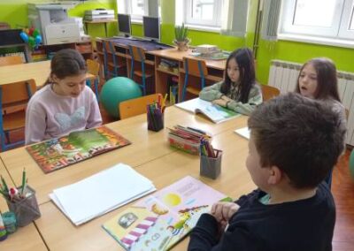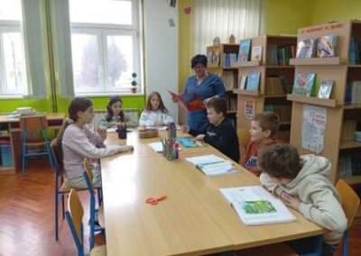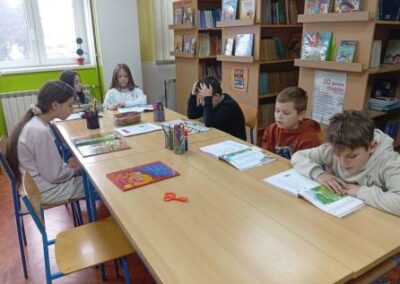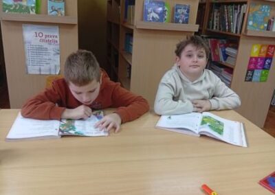 Na poticaj knjižničarke, učenici se rado uključuju u različite aktivnosti i projekte vezane uz čitanje. Tako su danas, učenici 4.r. matične škole čitali naglas odlomke iz omiljenih djela i priča te pretvorili školsku knjižnicu u čaroban svijet.