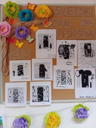 – knjižničarka je 20.ožujka s učenicima 3.r.matične škole obilježila taj dan radionicom „BLACKOUT“ poezija