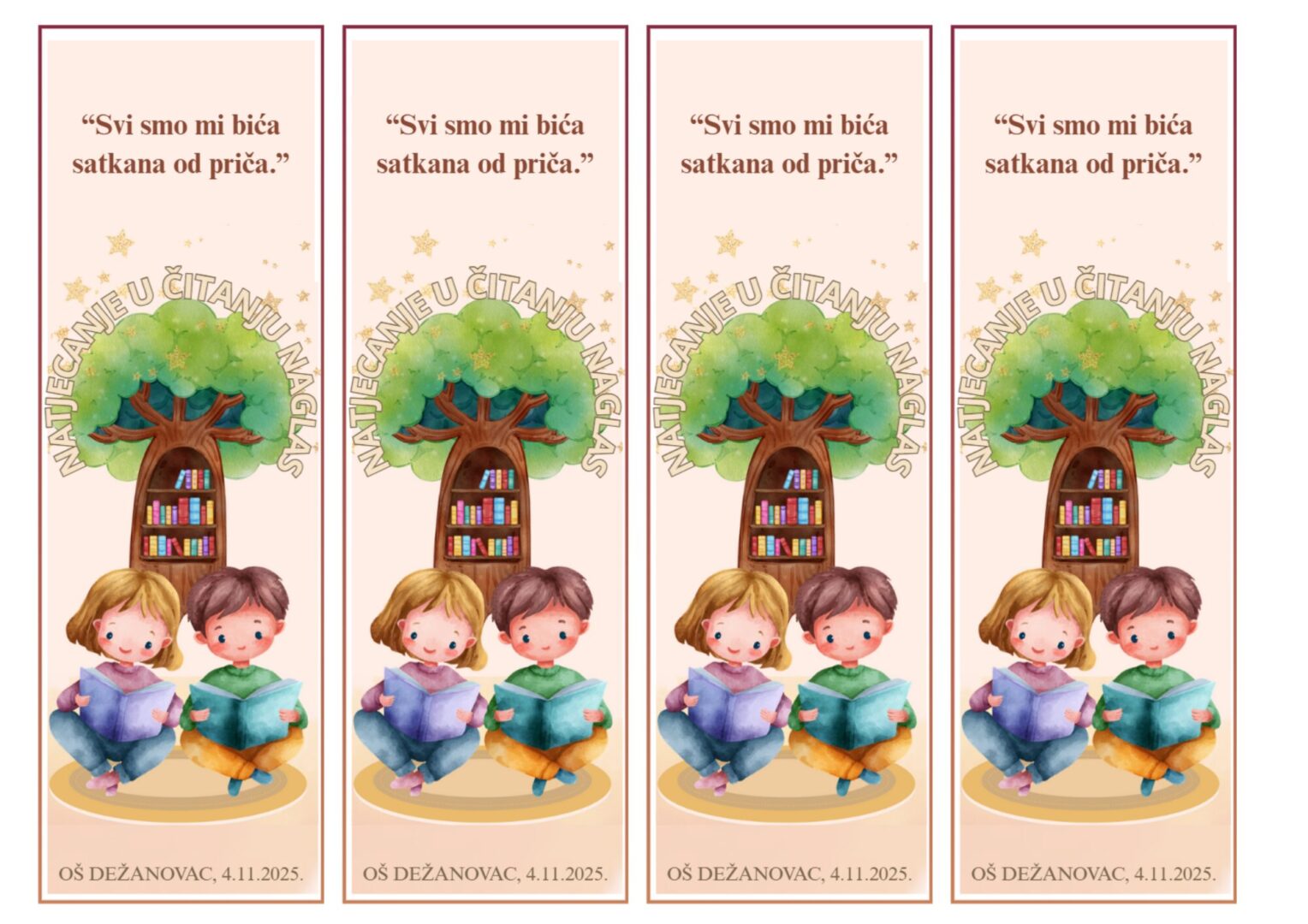 12. studenoga 2025. godine, u organizaciji Dječjeg odjela Narodne knjižnice “Petar Preradović” Bjelovar, u prostoru Bjelovarskog kazališta održano je županijsko natjecanje u čitanju naglas. Ova manifestacija održava se već desetu godinu zaredom, okuplja učenike osnovnih škola s područja Bjelovara, Čazme, Daruvara, Garešnice i Grubišnoga Polja , potičući ih na ljubav prema knjizi, čitanju i javnom nastupu.